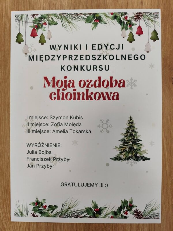 Wyniki konkursu „Moja ozdoba choinkowa” -wręczenie dyplomów i nagród
